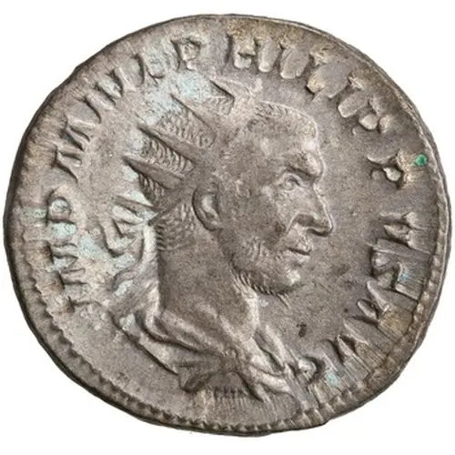 | Descripción del anverso | Bust of Philip the Arab, radiate, draped, cuirassed, right. |