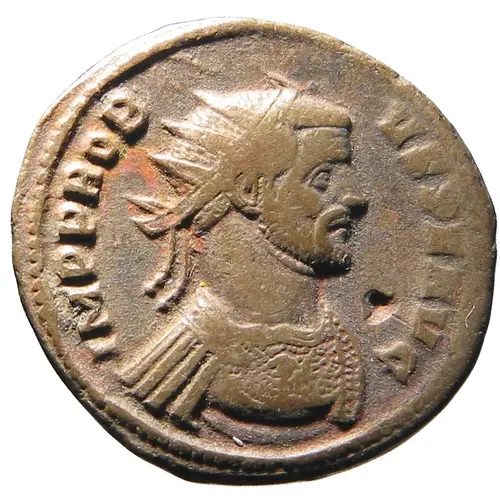 | 正面铭文 | IMP PROBVS P F AVG (Translation: Imperator Marcus Aurelius Probus Pius Felix Augustus. Supreme commander (Imperator), Probus, the pious, the fortunate, emperor (Augustus).) |