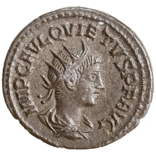 | Obverse description | Bust of Quietus, radiate, draped, right, or bust of Quietus, radiate, draped, cuirassed, right. |