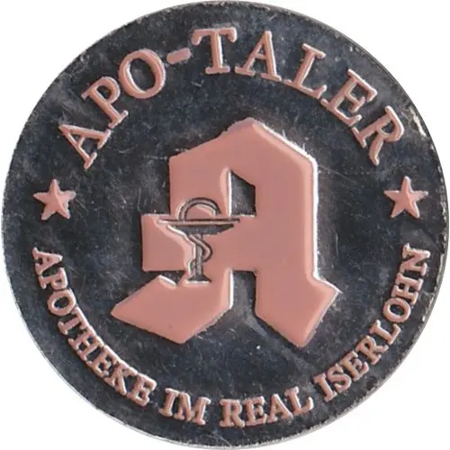 Obverse lettering APO-TALER A APOTHEKE IM REAL ISERLOHN