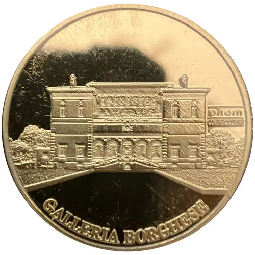 | Popis líce | Engraving of Galleria Borghese with curved text `GALLERIA BORGHESE` underneath it |