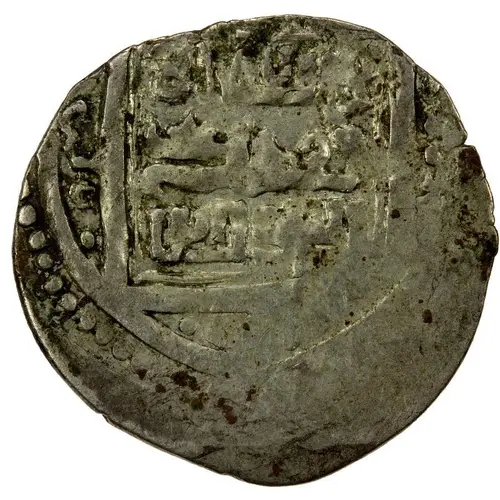 Sunni kalima within a square, pseudo-Arabic in the legends of the square. The kalima is distorted. |