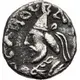 | Descripción del reverso | Nike standing left, holding plate and staff with Kharosthi lettering around. |