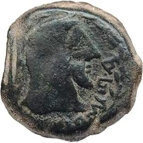 | Obverse description | Bearded head, right; palm branch round part of the edge. |