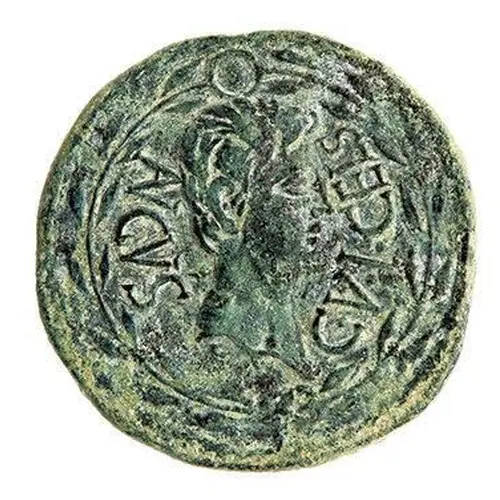 | Obverse description | Bare head of Augustus right, all in wreath. |