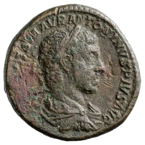 | Obverse lettering | IMP CAES M AVR ANTONINVS PIVS AVG (Translation: Imperator Caesar Marcus Aurelius Antoninus Pius Augustus. Supreme commander (Imperator) and Caesar Marcus Aurelius Antoninus, pious emperor.) |