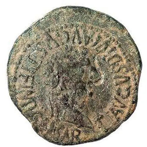 TI · AVGVS · DIVI · AVGVSTI · F · IMP · CAESAR (Translation: Tiberius the venerable (Augustus), son of the divine Augustus, supreme commander (Imperator), Caesar.) |