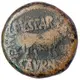 Descrição do anverso Countermark `TI` within incuse rectangle. Laureate head of Emperor Tiberius facing right.