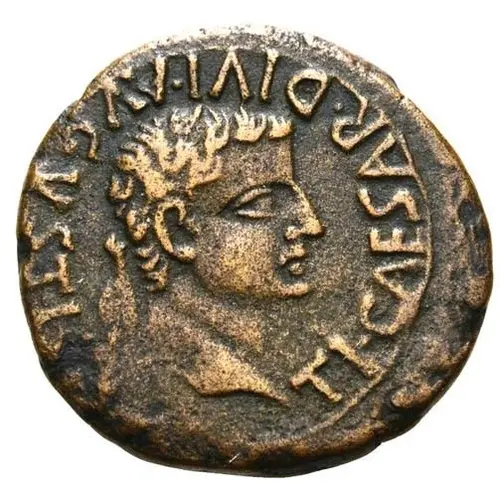 Описание аверса Laureate head of Tiberius right.