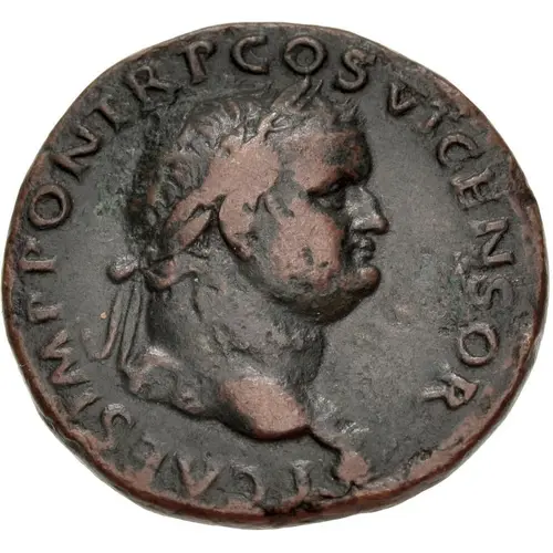 | نوشتههای روی سکه | T CAES IMP PON TR P COS VI CENSOR (Translation: Titus Caesar Imperator, Pontifex [Maximus], Tribunicia Potestate, Consul Sextum, Censor. Titus, Caesar, supreme commander (Imperator), [high] priest, holder of tribunician power, consul for the sixth time, censor.) |