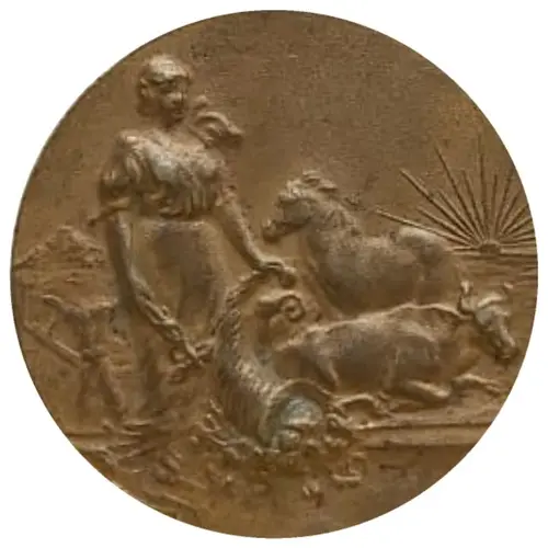 | Reverse lettering | ASOCIACIÓN RURAL DEL URUGUAY SOCIEDAD DE FOMENTO FLORES AL MEJOR TORO HEREFORD INSCRIPTO DEL SR. EMILIO ETCHEVERRY 10-8-1939 |