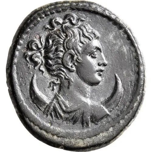| Obverse description | Draped bust of Selene-Hekate, right; behind her shoulders, crescent |