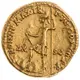 | Reverse description | Virtus, helmeted, in military dress, standing left, right foot on helmet among shield, holding long spear in left hand and parazonium in his right hand and resting it on right knee |