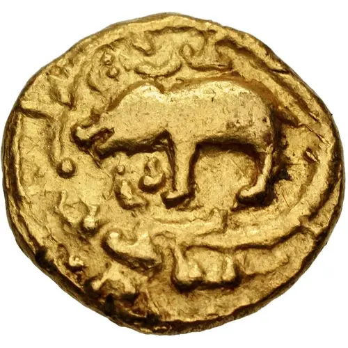 | Obverse description | Varhan and Temple type. Caparisoned boar standing left within ornate frame |