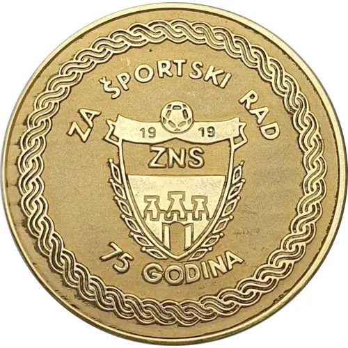 | Obverse lettering | ZA ŠPORTSKI RAD 1919 ZNS 75 GODINA |