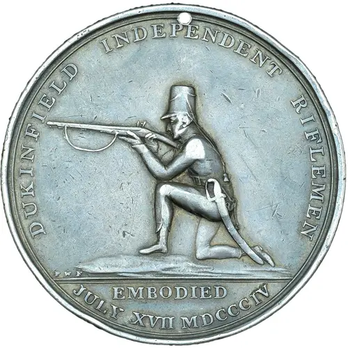 | Obverse lettering | DUNKINFIELD INDEPENDENT RIFLEMEN EMBODIED JULY XVII MDCCCIV |