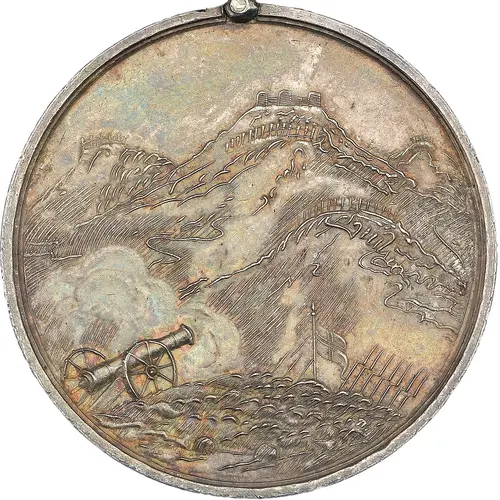 | Reverse lettering | (Translation: This medal was conferred by the Nawab Governor- General Bahadur in testimony of the energy, good service, skill and intrepidity which were displayed during their campaigns in the Hills in the years of the Hegira 1229 and 1230.) |