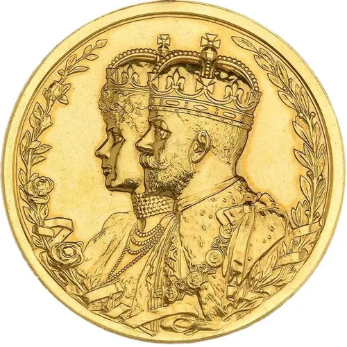 | Reverse lettering | (Translation: The Durbar of George V, Emperor of India, Master of the British Lands) |