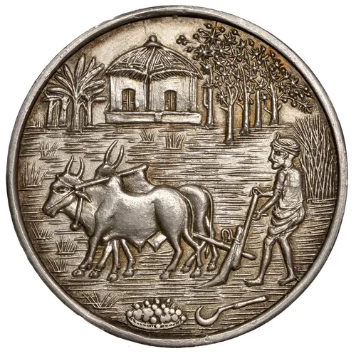 | Obverse description | Ploughing scene, house and trees in background |