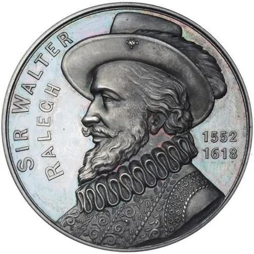 | Obverse description | Bust of Sir Walter Raleigh left |