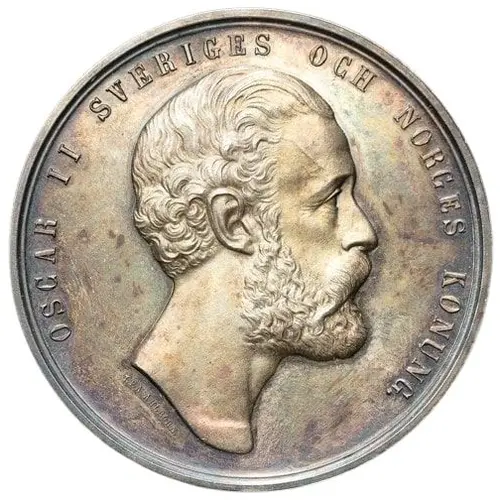 | Obverse description | Bust of Oscar II facing right, with legend above and engraver`s signature below. |