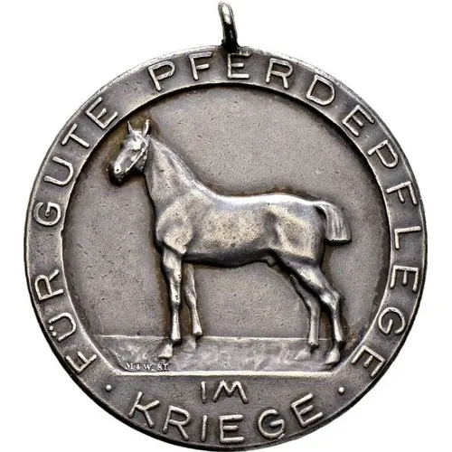| Obverse lettering | FÜR GUTE PFERDEPFLEGE · IM · KRIEGE M. & W. ST. |