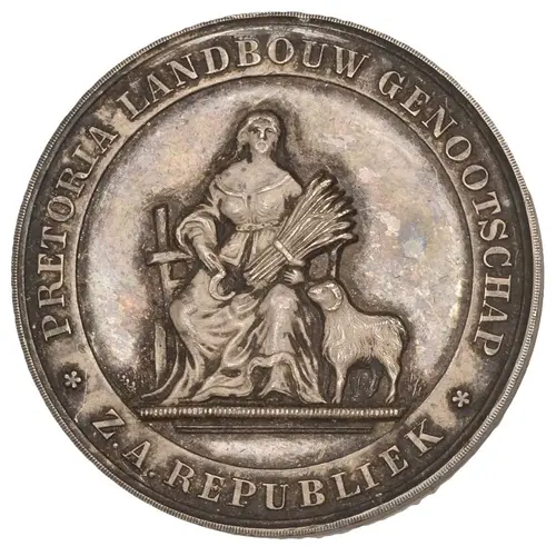 | Obverse lettering | PRETORIA LANDBOUW GENOOTSCHAP Z.A. REPUBLIEK |
