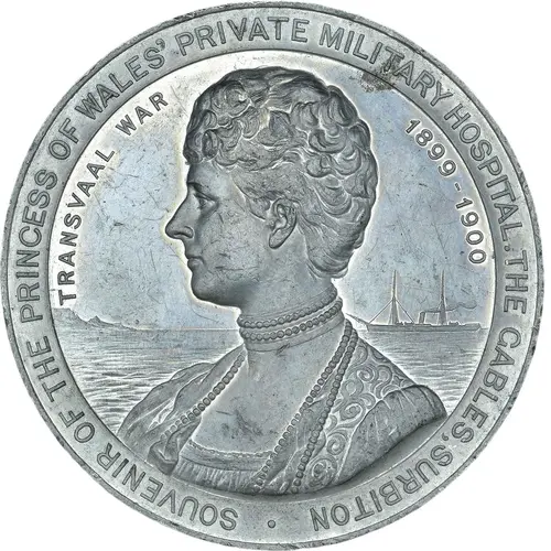 | Obverse lettering | SOUVENIR OF THE PRINCESS OF WALES` PRIVATE MILITARY HOSPITAL. THE GABLES, SURBITON TRANSVAAL WAR 1899 - 1900 |
