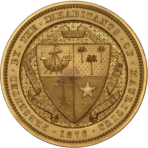 | Obverse lettering | PRESENTED BY THE INHABITANTS OF MAURITIUS 1876 |