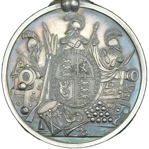 | Obverse description | Trophy of Arms with Royal Arms in centre |