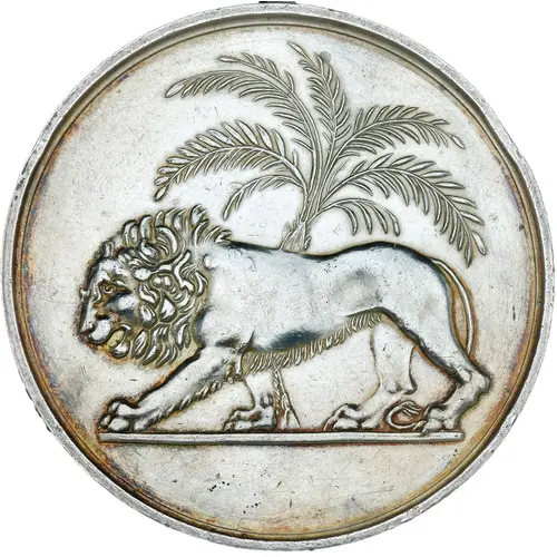 | Obverse description | Lion walking left before palm tree |