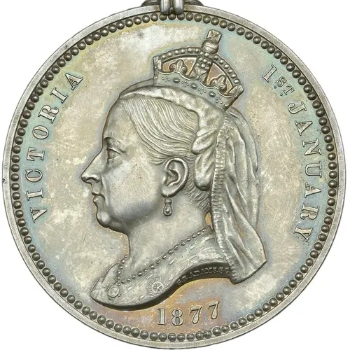 | Obverse lettering | VICTORIA 1ST JANUARY 1877 |