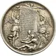 Writing board, on the sides Victoria with a victory wreath and Fama with a trumpet, above a small angel with branches, at the bottom in front of the board sits the personified time and oversees the personified story that the board describes; in the background the sea with sinking ships. |