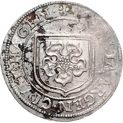 ✿ MONETA. ARGEN. CIVIT. HAGEN. (Translation: Silver coinage of the city of Haguenau.) |