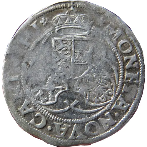 | 正面描述 | 3 shields in a trilobe and a beaded circle, above Carinthia (Kärnten), below Styria and Carniola. A crown above divides the legend. |