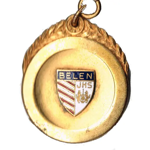 Obverse description Circle with the shield of the Society of Jesus, with work `BELEN` added on top. At the top there is a wreath decoration.