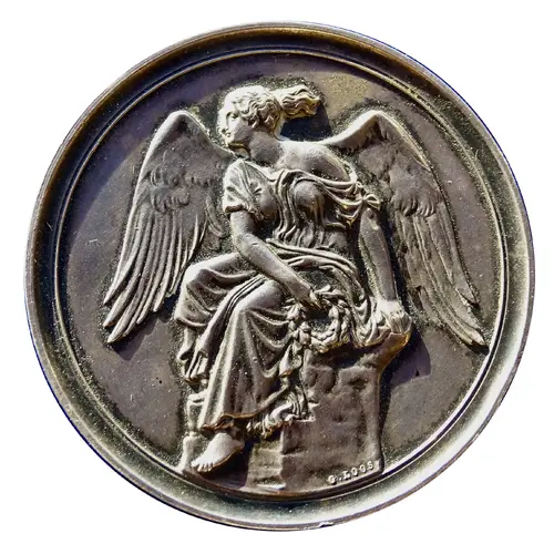 | Obverse description | Winged Victoria sitting left, signature below. |