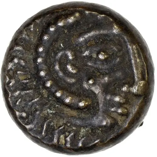 Technical/Grading: Struck in billon, this 3.95-gram drachm often presents with variable strike quality. High points, typically the hair and facial features on the obverse and the animal's musculature or wings on the reverse, can exhibit weakness or partial striking. Flans are frequently irregular, and off-centering is not uncommon. The billon alloy, a debased silver, tends to develop a characteristic dark patination, which can obscure finer details. Collectors should assess overall legibility and preservation, as a full, sharp strike is rare for this imitative series.