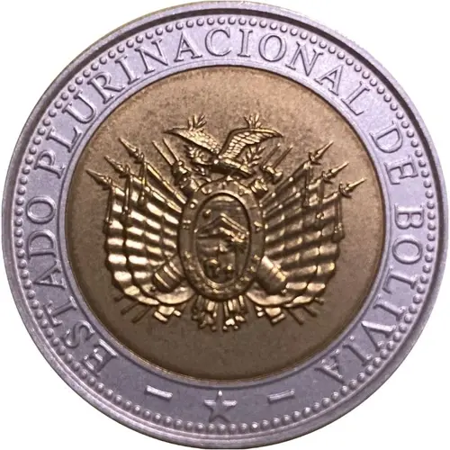 | Chữ khắc mặt trước | ESTADO PLURINACIONAL DE BOLIVIA ̶ ̶ (Translation: Plurinational State of Bolivia) |