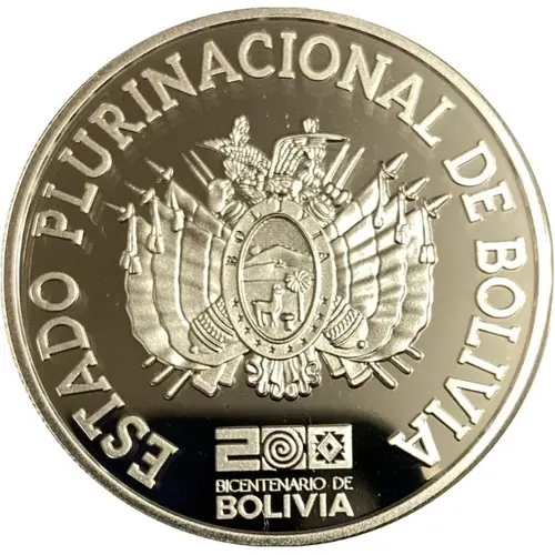 | 表面の説明 | Bolivian coat of arms, country name on top and sides, near edge, Bicentennial of Bolivia official logo below. |