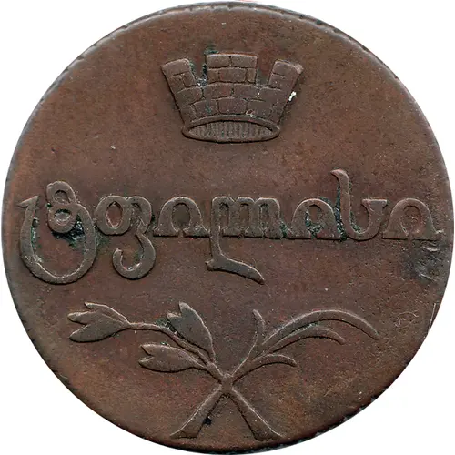 Reverse description Denomination in Persian Dinars, but by Georgian lettering. `კ` = 20 Dinars Lettering year by Georgian lettering