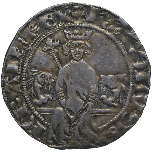 | Obverse description | Crowned king sitting facing, holding scepter, flanked by two dolphins. |