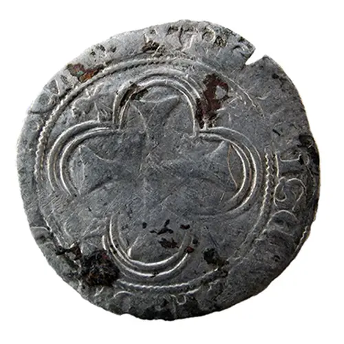 | Obverse description | Cross with an F in second angle, a pellet in third angle, in a quadrilobe with clovers in quarters. |