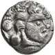 | Aversbeschreibung | Stylized head right, serpents around; above, boar right. |