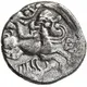 | Reversbeschreibung | Human-headed horse galloping right, stylized charioteer above, holding whip; in field to right, x within square; beneath horse, boar to right. |