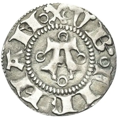 | Descripción del anverso | Large, Gothic A surrounded by four annelets within beaded inner circle. Crossed keys at top. |