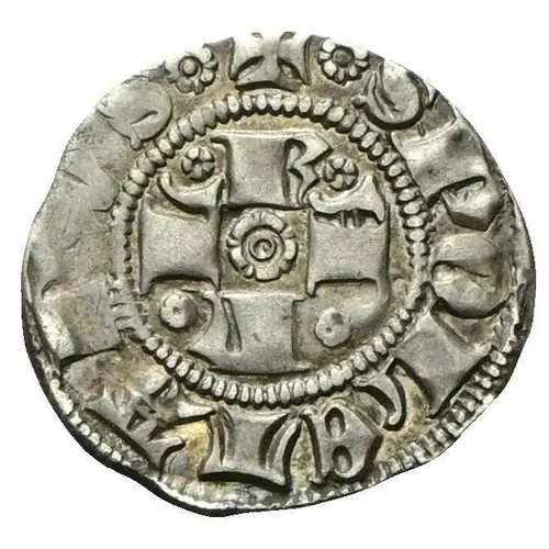 | Descrizione del dritto | Letters in shape of a cross around central rosette, additional rosettes in external corners, all within reeded circle. |