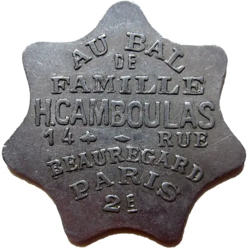 | Obverse lettering | AU BAL DE FAMILLE H. CAMBOULAS 14 RUE BEAUREGARD PARIS 2E_ |