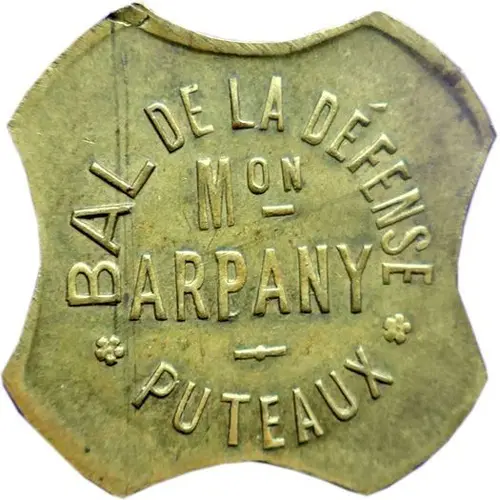 | Obverse lettering | BAL DE LA DEFENSE Mon. ARPANY * PUTEAUX * |