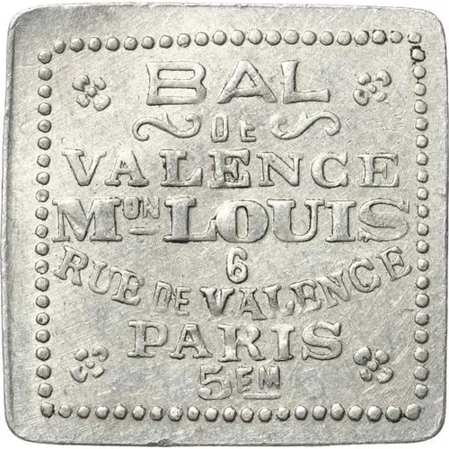 | Obverse lettering | BAL DE VALENCE Mon LOUIS 6 RUE DE VALENCE PARIS 5em |